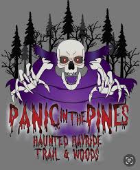 Panic in the Pines is open on Saturdays in October and November 1st from 7:30 pm until late (ends when the last person makes it through the haunted house).